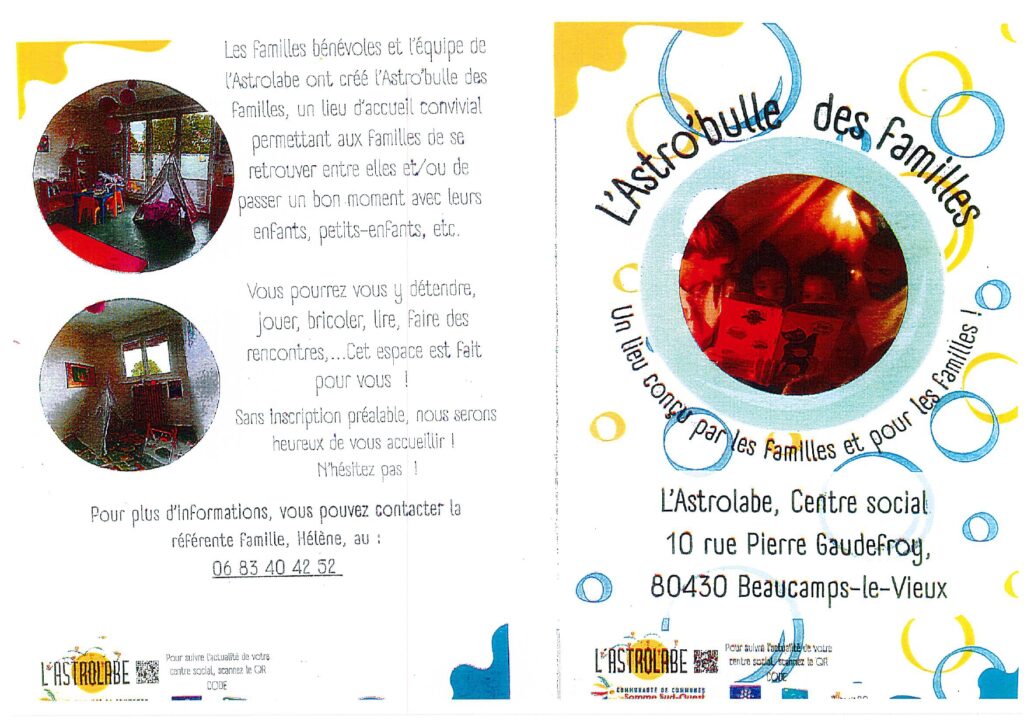 Que vous soyez parents, grands-parents, assistante maternelle, l’ASTROLABE vous ouvre ses portes. Venez découvrir un lieu convivial où l’on apprend, où l’on échange et où l’on construit ensemble des projets.