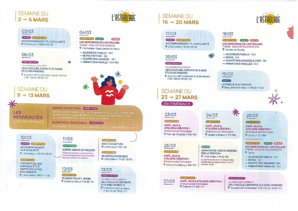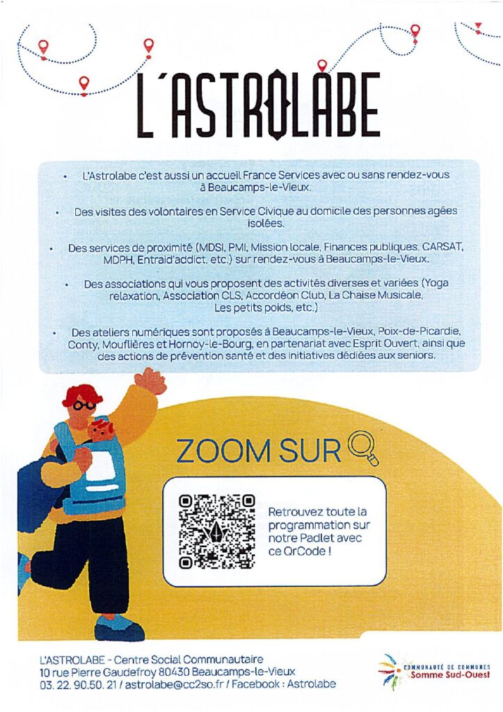 Qu’est ce que c’est ? Un espace d’accueil, d’écoute et d’animation ouvert à tous. Véritable lieu intergénérationnel, l’ASTROLABE propose chaque mois un programme riche et varié pour les familles, les parents les enfants et les seniors.